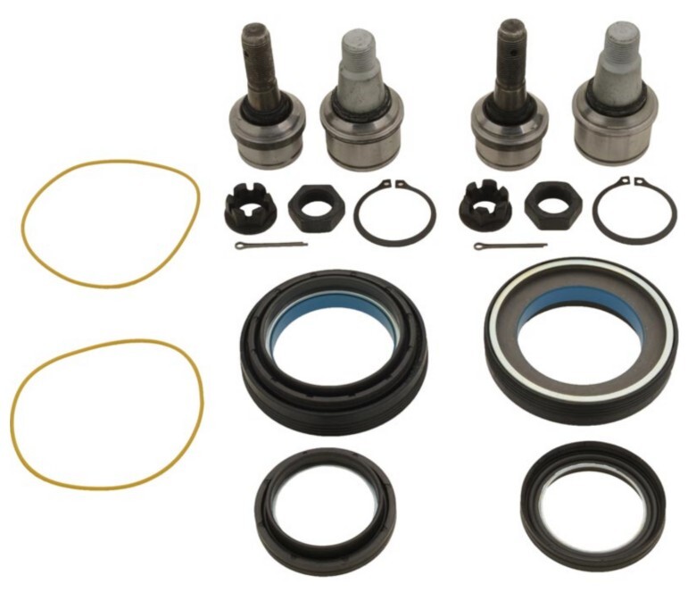 Before replacing any 4x4 parts, check tire pressure, then inspect the track bar, ball joints, tie rods, shocks, and alignment. A worn-out Super Duty front end can feel like a 4x4 problem when it is really a suspension problem. A full balljoint repair kit can be found on our site.