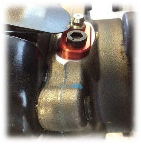 5. Install the Riffraff Diesel Front ABS Grease-able Block Off Fitting into the ABS bore. Use the ABS hold-down bolt as required. (can be permanently installed for 2WABS systems if desired)