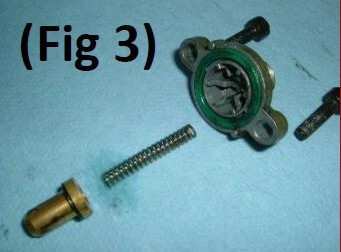 4. Remove the two Torx bolts holding the OEM fuel pressure regulator to the fuel filter housing (the adapter where the Return line was connected – Torx T25). Be careful not to lose the spring and plunger from inside the fuel pressure regulator.