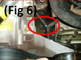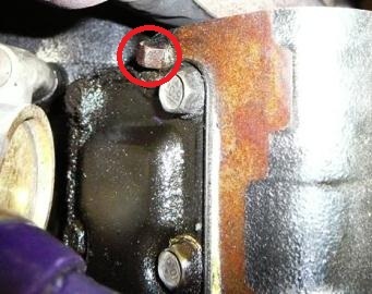 9. Remove the fuel test port plug on the passenger side. #6 in the Reference Schematic, front of engine near fuel filter housing – 9/32 inch square head on it, and may be hidden behind a wire loom that can be pushed aside for easier access. Use either Vice Grips or an adjustable wrench to break this plug free. Then use a 5/16 inch wrench/socket to complete its removal.