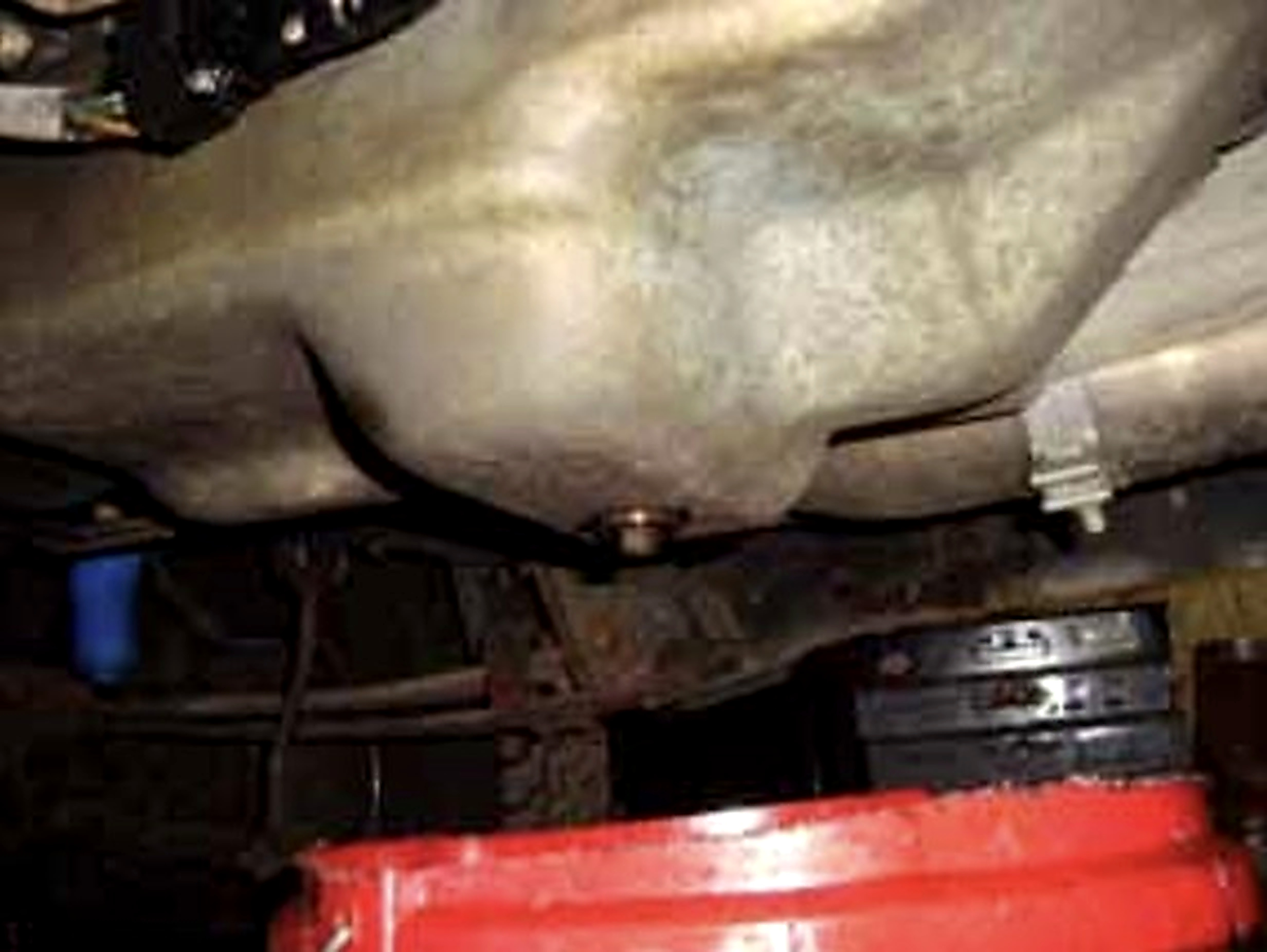 1. Remove the drain plug from the transmission and catch the fluid in a drain pan. It may take several minutes for the fluid to drain.