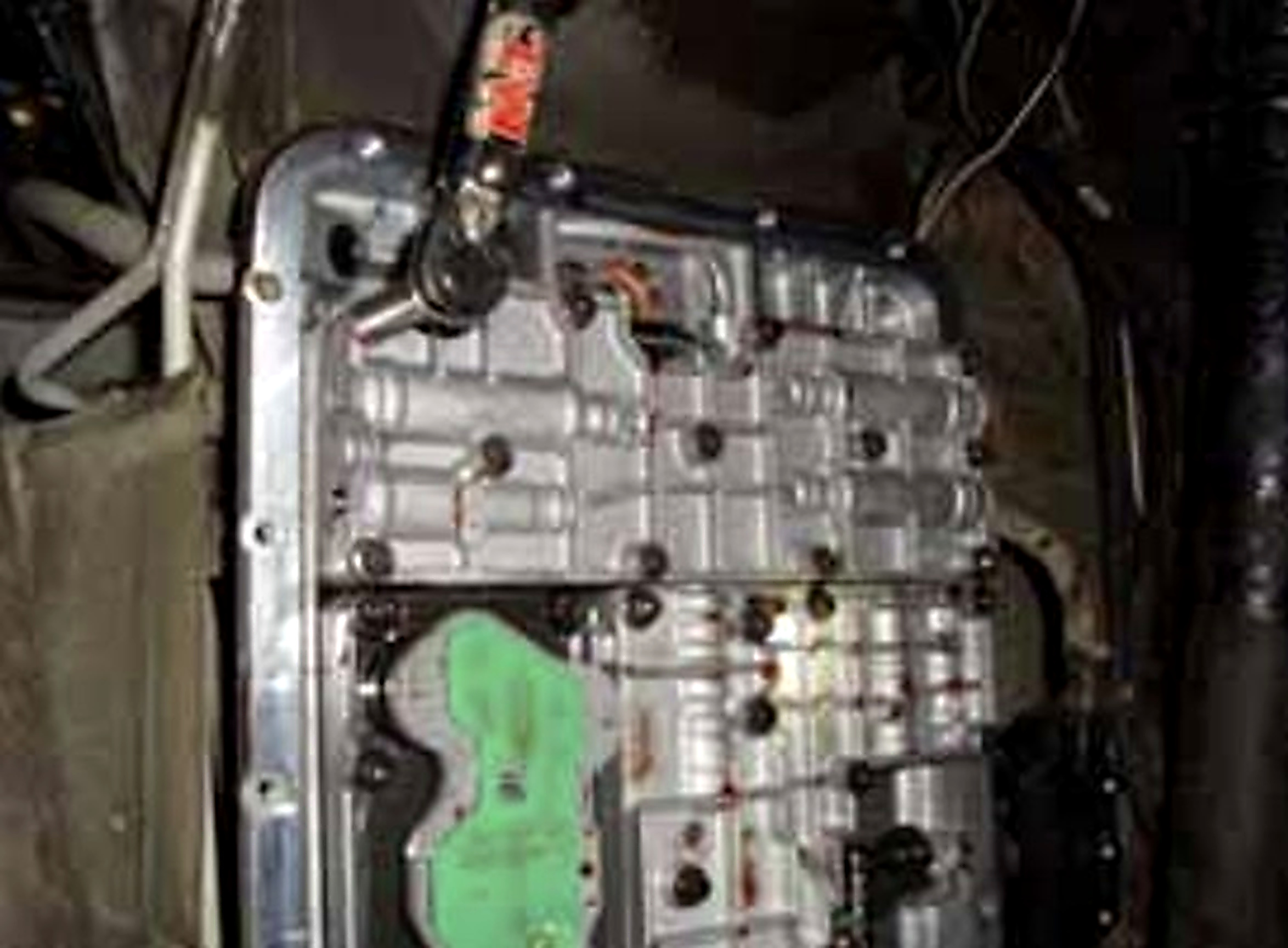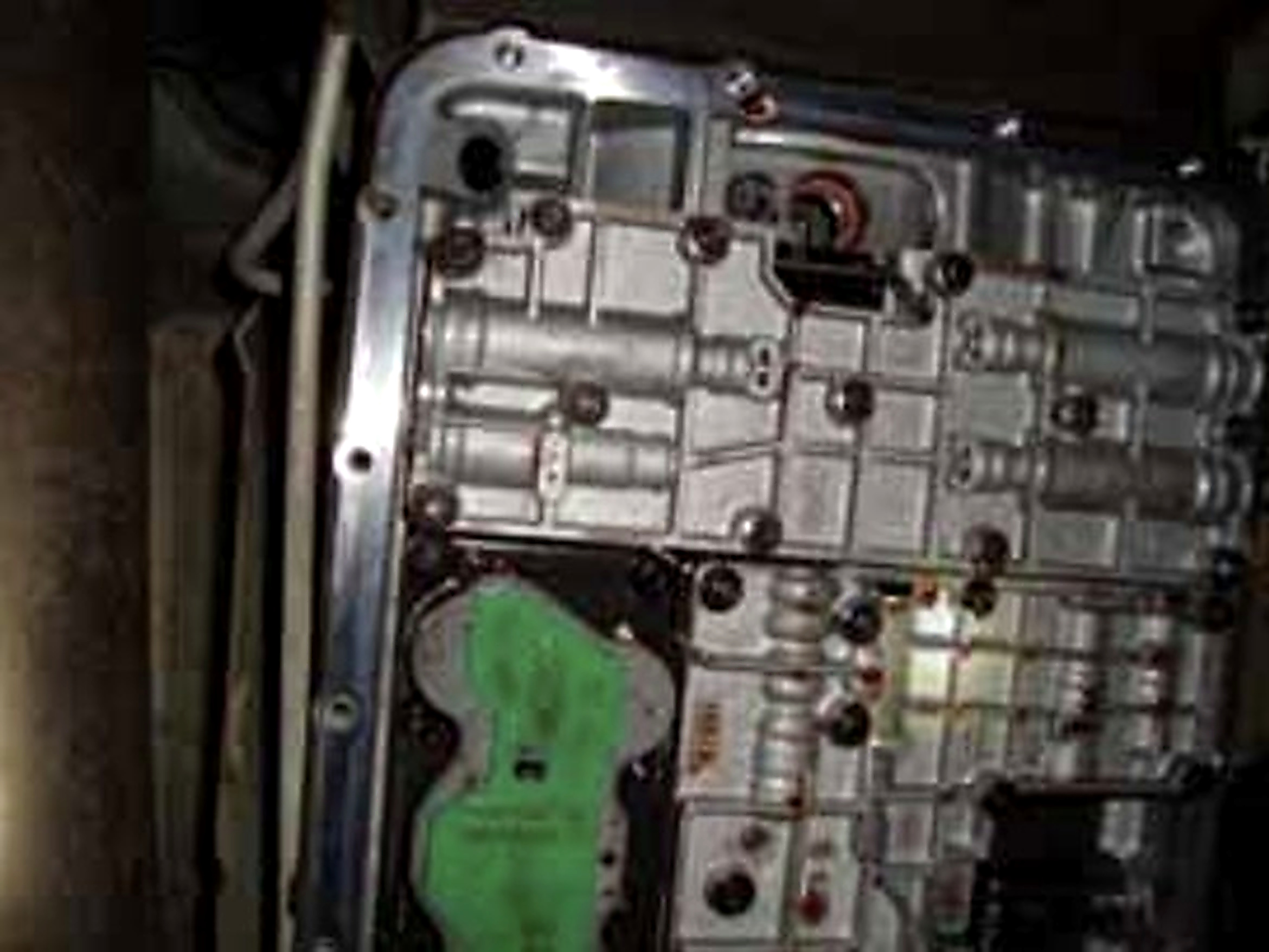 6. The valve body closest to the front of the transmission is the one to replace. Remove the 8mm nuts and 10mm bolts holding the valve body in place. Be careful removing the valve body as it will still be full of fluid.
