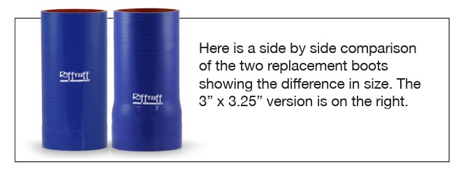 Determining the intercooler flange size is required before ordering your Riffraff Diesel Intercooler Boots. The intercoolers have different configurations, so you must verify the size prior to ordering. This is an easy task and only takes a few minutes.