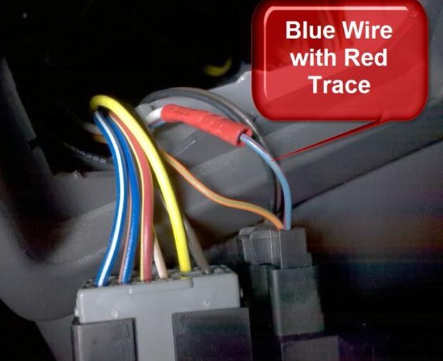 21. The white 18 gauge lighting wire will be routed to the light switch opening. It will be tied to the light blue wire with the red trace on the smaller connector. You can use your choice of methods to splice this wire. Instant tap or T-Tap connections work well here.