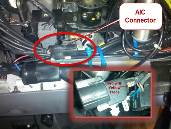 23. Remove the cover from the fuse box, find a circuit that is powered with the ignition on (radio circuit works well for this). Remove the fuse and install a fuse tap into that location. Install the fuse removed from the panel and another fuse (3 amp is all that is needed) for the gauge power. As alternate for the power you can use the Auxiliary Idle Control connector that is attached to the forward side of the lower dash cross member. (Held in place with a plastic push rivet clip) Just tap into the red wire with the yellow trace.