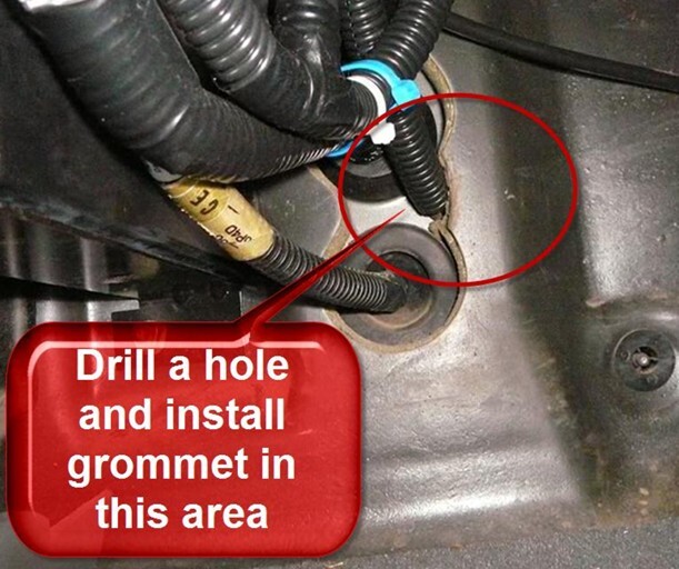 25. If you have an automatic truck, you can use the clutch master cylinder cutout as a wire penetration point. Since there is not a clutch master cylinder there is a plastic plug installed on the firewall that makes a great pass through for your wires. If you have a manual truck, you can drill a hole in the firewall near the factory penetrations and install a grommet to protect the wires/tubing.
