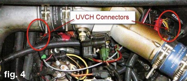 12.  Disconnect the Under Valve Cover Harness (UVCH) from each injector and from the glow plugs. Remove the Valve Cover Gasket assembly from the engine.