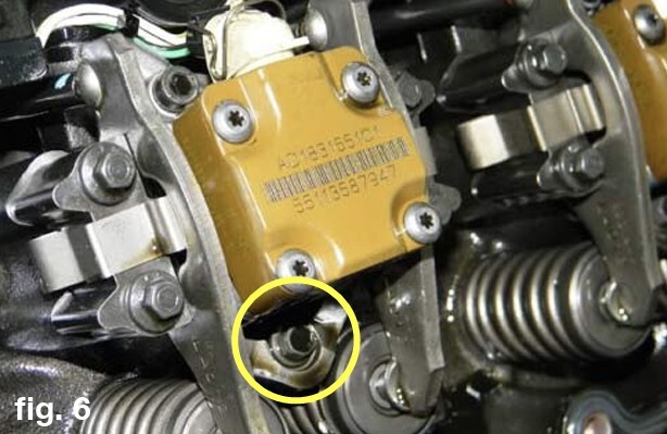 17.  Ensure all of the copper tip washers and the o‐rings have been removed from the injector bores before proceeding. Inspect the injector bores and cups for any signs of damage.
