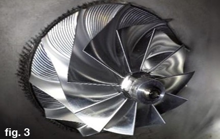 9.  Thread on the Anti Surge Compressor wheel onto the shaft. Tighten it down to 50-65 in-lb. CAUTION: DO NOT OVER TIGHTEN THE COMPRESSOR WHEEL ONTO THE SHAFT!