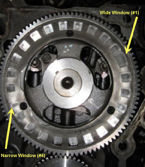 First off, it’s a Hall Effect sensor. Hall Effect sensors measure changes in a magnetic field. For the 7.3, a tone ring is mounted to the camshaft, this tone ring is made of metal and has gaps in it. The CPS is placed over the ring and as the ring spins, the sensor measures differences in the magnetic field as each of these gaps in the tone ring passes by. This is how the PCM gets its RPM and piston location information.